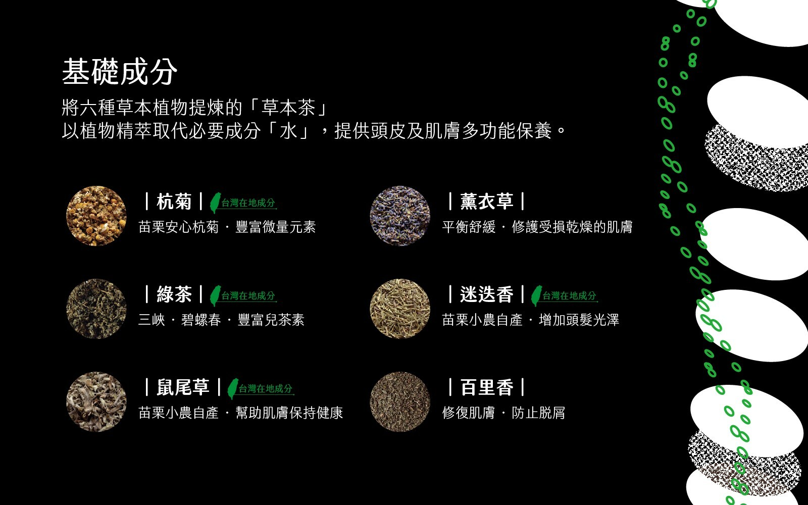 主要成份 │ 杜松、薰衣草、迷迭香、檸檬、萊姆、紫草、草本茶...等