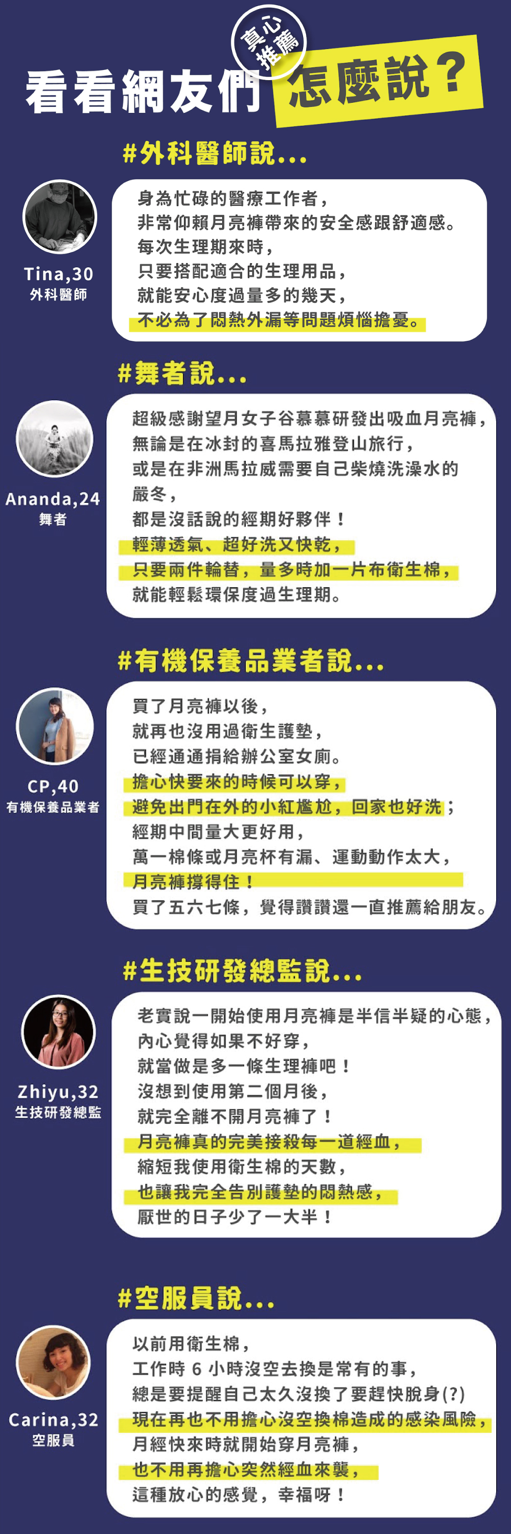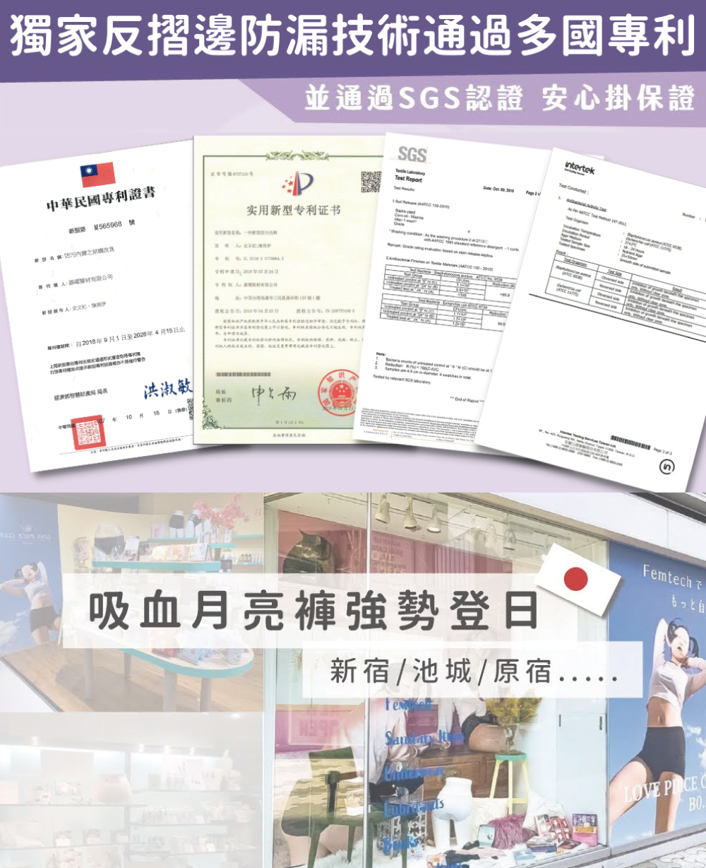 A:月亮褲的材質有做快乾抑菌處理,故不會有異味及感染問題,且都有通過SGS檢驗。