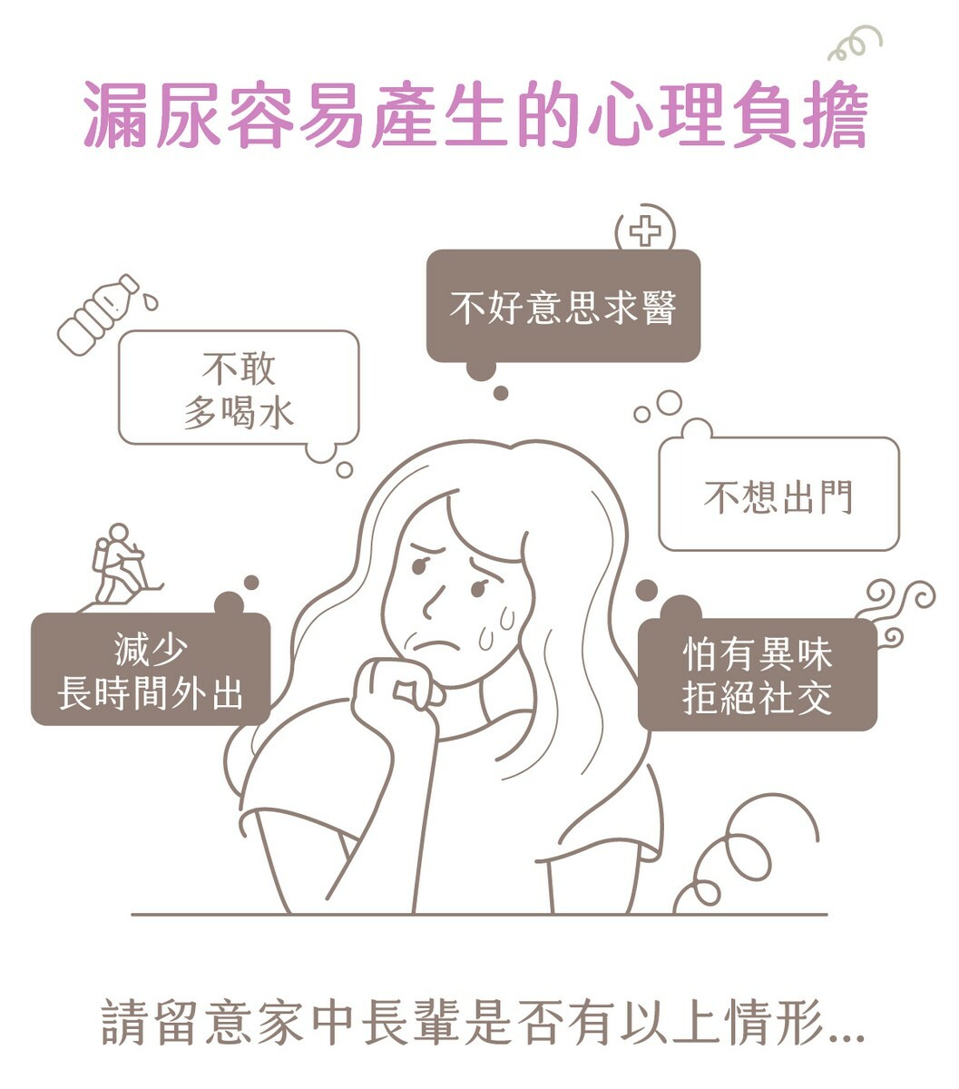 儘管漏尿是可以治療的,仍很多人會因不好意思就醫而選擇隱忍,直到出現尿道炎、濕疹等,不僅讓小狀況衍伸成為大問題,長期下來還造成心理影響,影響生活品質。