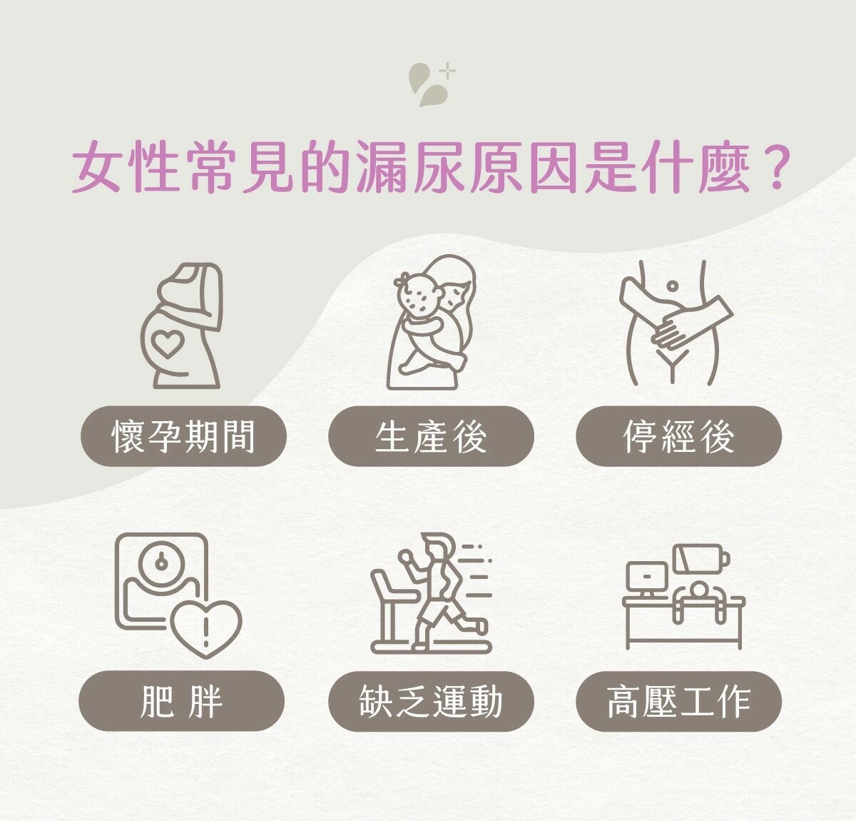 漏尿不是到了更年期才容易發生,也不一定是老化的象徵;你知道其實在「懷孕期間」和「產後」都可能會有漏尿情形嗎?