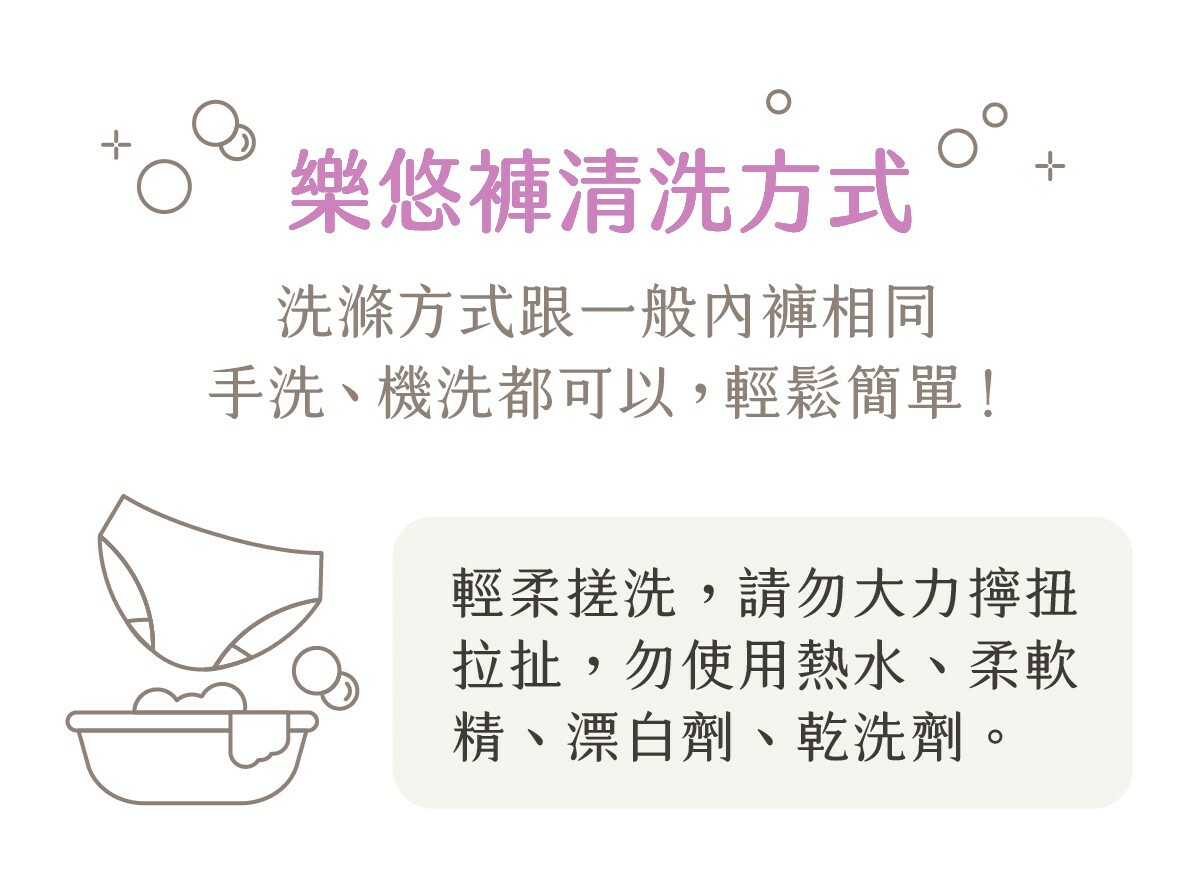 樂悠褲™ 不僅可以「重複使用」,而且容易清洗,快速乾燥。在正常使用下可穿1~2年以上,絕對是減少垃圾、友善環境的好選擇。