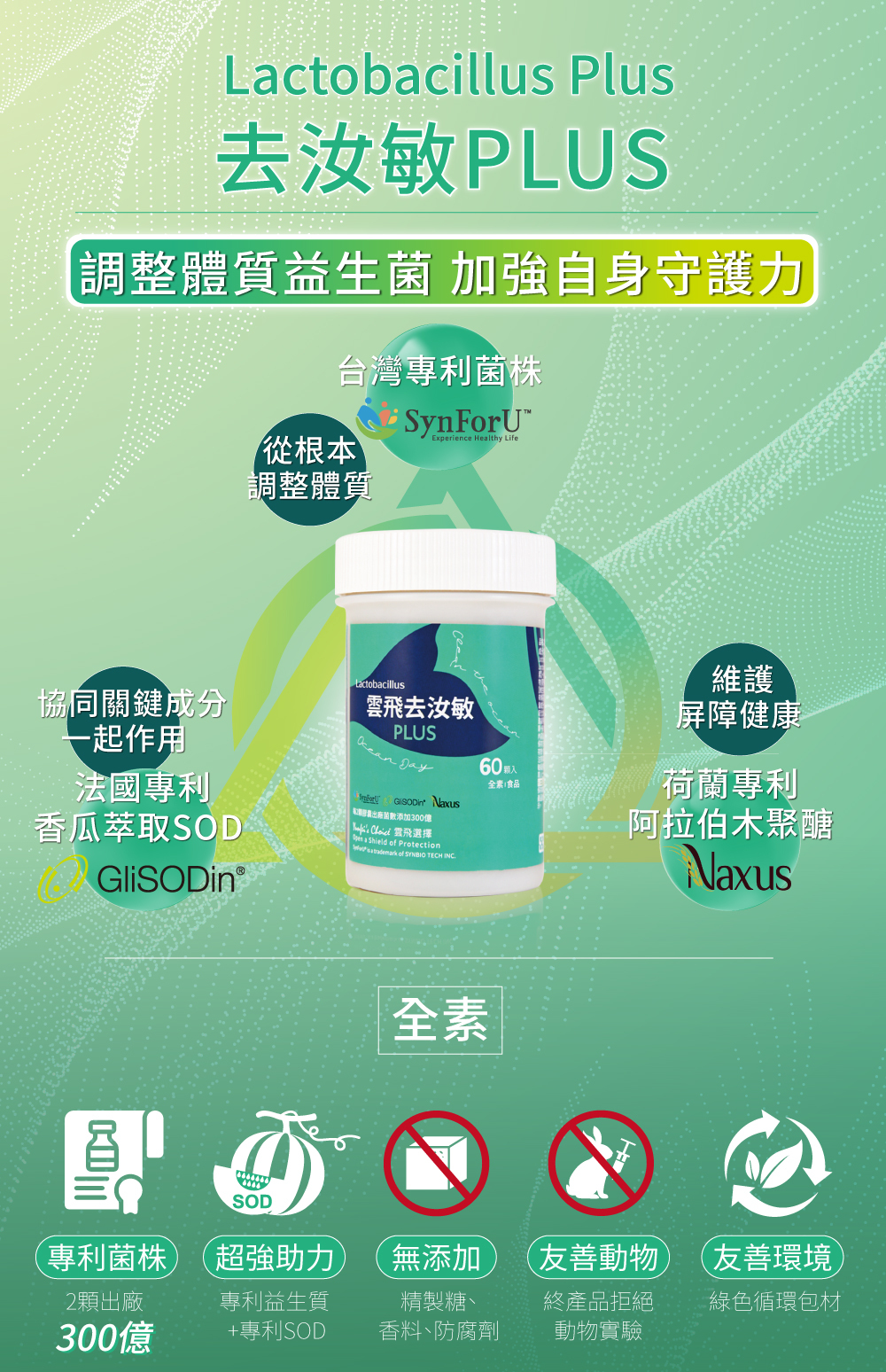 ★ 專利成分1:台灣專利菌株SynForU-ImmuUp乳酸菌,改變細菌叢生態,從根本調整體質。